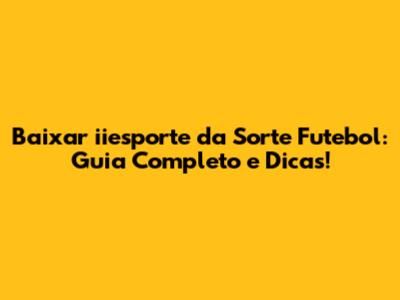 Baixar Iiesporte Da Sorte Futebol: Guia Completo E Dicas!