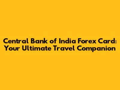 Central Bank Of India Forex Card: Your Travel Companion