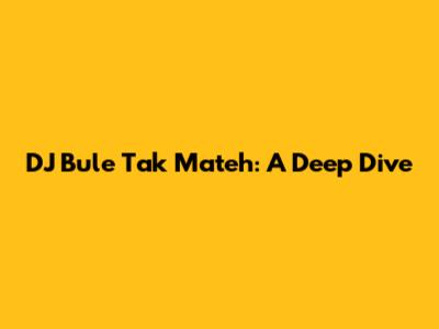 DJ Bule Tak Mateh: A Deep Dive
