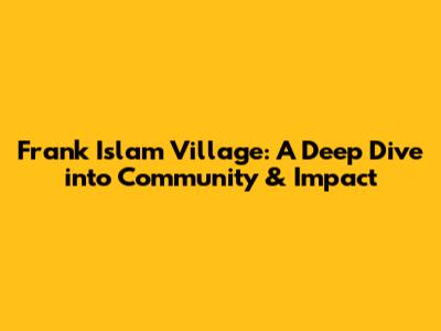 Frank Islam Village: A Deep Dive Into Community & Impact