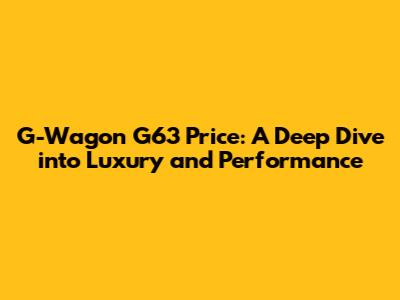 G-Wagon G63 Price: A Deep Dive Into Luxury And Performance