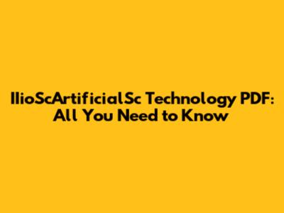 IIioScArtificialSc Technology PDF: All You Need To Know