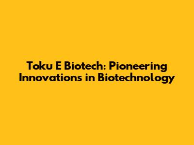 The Impact of Toku E Biotech on the Biotech Industry